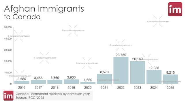 In 2025, a total of 8,215 Afghans were admitted to Canada as permanent residents.