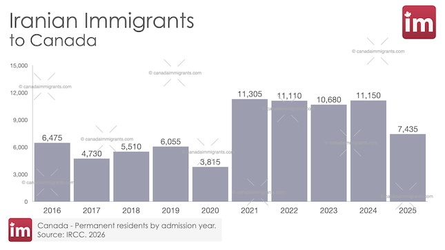In 2025, 7,435 Iranians admitted to Canada as permanent residents.
