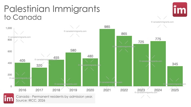 In 2025, 345 Palestinians were admitted to Canada as permanent residents.